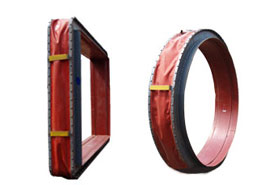 機架是非金屬膨脹節(jié)的輪廓支架,保證有足夠的強度和剛度,機架的材料應與介質溫度相適應。一般在400℃以下用Q235-A 600℃以上用不銹鋼或耐熱鋼制成。機架一般有與所連接的煙風道相匹配的法蘭面。